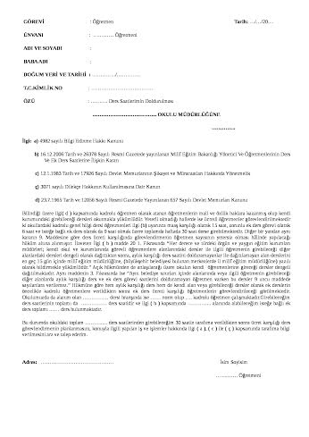 30 DERS SAATİN DOLDURULMA TALEBİ İÇİN DİLEKÇE: